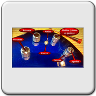Instalación de Bassalto en el bajo Schecter azul de Javier Malosetti